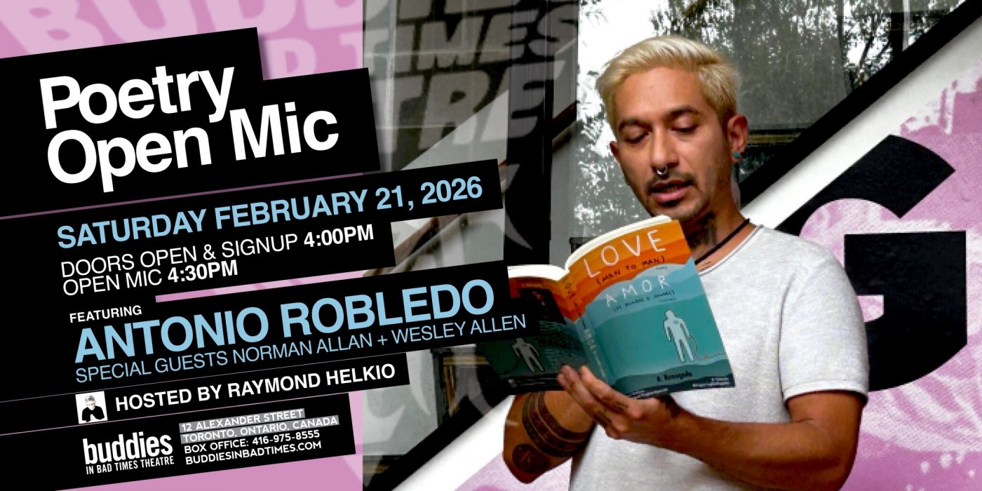Buddies is a fully accessible venue with barrier-free, gender-neutral washrooms. Thank you to Jordyn Crawford, Jonathan Freeman, the staff at Buddies In Bad Times Theatre, Tallulah's Cabaret, and The Reading Salon.