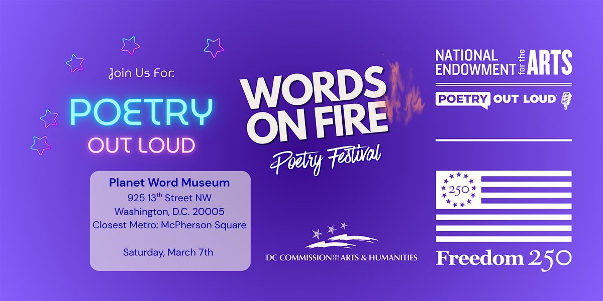 Words on Fire is an exciting open mic event for DCPS students in grades 8 - 12 to share their voices and perform their own original poetry. On Saturday, March 7, 2026, students are invited to take the stage at the Planet Word Museum for an afternoon of creativity, self-expression, and community. Whether you’re a seasoned poet or stepping up to the mic for the first time, this event is a powerful space for students to be heard, supported, and inspired.
