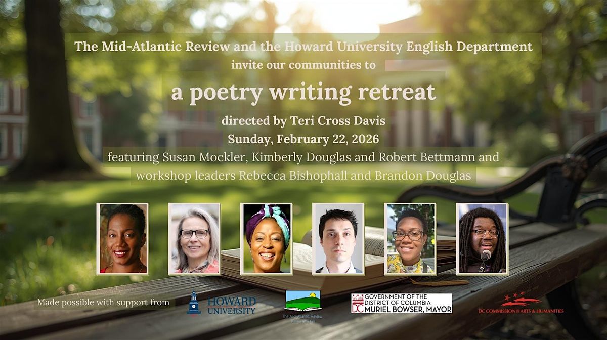 Day Eight is pleased to announce the next event in our ongoing partnership with Howard University, supported in 2026 by grant from the DC Mayors Office of Community Affairs. Sunday, February 22, the Day Eight community is invited to join Howard University students for a poetry writing retreat reflecting on mindfulness. Directed by Teri Cross Davis and co-hosted by Howard University faculty and Mid-Atlantic Review contributors Susan Mockler and Kimberly Douglas and Mid-Atlantic Review managing editor Robert Bettmann, the retreat includes a workshop co-led by Day Eight book authors Rebecca Bishophall and Brandon Douglas.