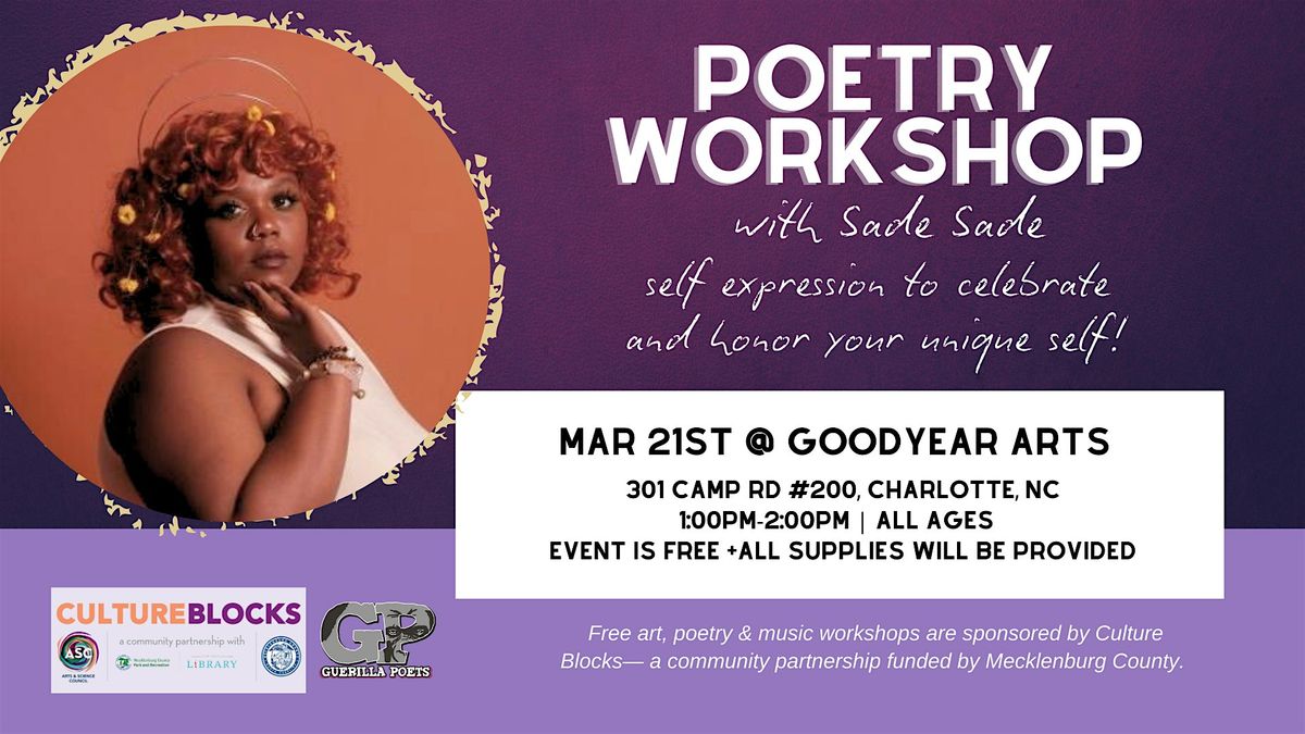 Free art, poetry & music workshops are sponsored by Culture Blocks— a community partnership funded by Mecklenburg County.