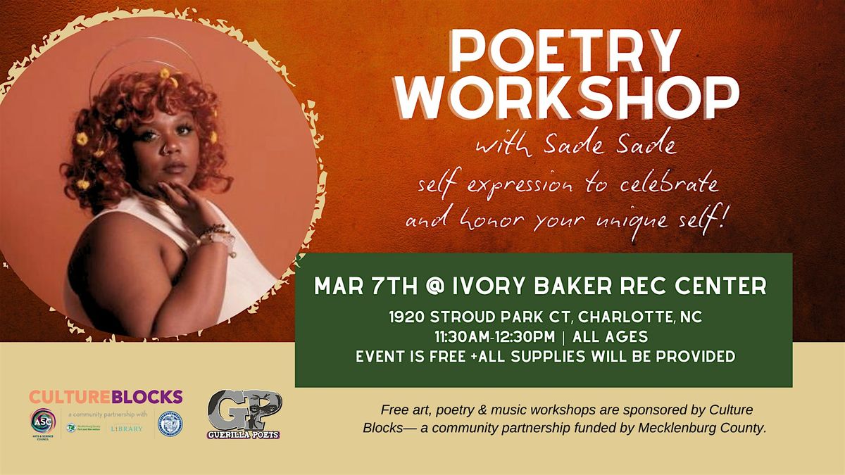 Free art, poetry & music workshops are sponsored by Culture Blocks— a community partnership funded by Mecklenburg County.