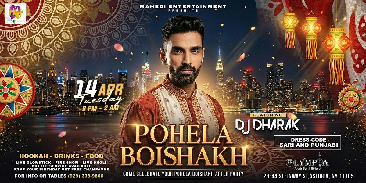 We are celebrating bangali New Year after party at Olympia with the most famous Bollywood dj in New York dj Dharak. Come and dance