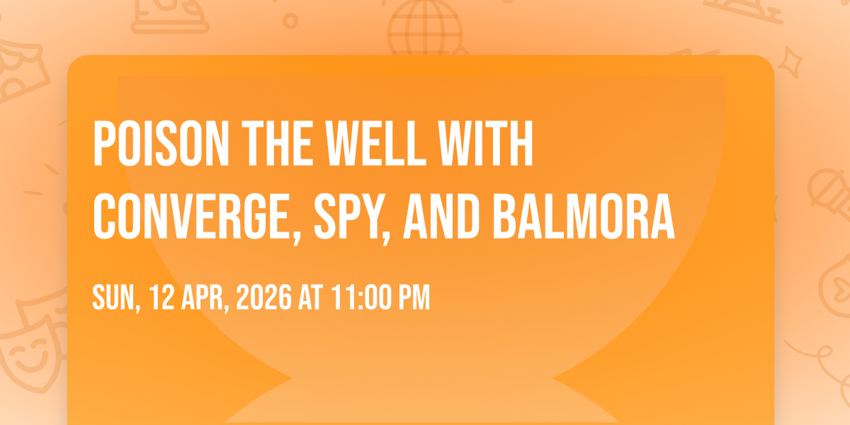 ๐ Location: 39.2904, -76.6123๐ Prepare to be amazed at Poison The Well with Converge, SPY, and Balmora, the most anticipated gathering of the season! ๐ Set against the stunning backdrop of Nevermore Hall in vibrant Baltimore, MD, this event promises to redefine your expectations. ๐ Mark your calendars for April 12th, 2026 at 11:00 PM and get ready to immerse yourself in an atmosphere of wonder and excitement. โจ From the moment you arrive, you'll be transported into a world where memories are made and stories come alive. They have crafted an experience that perfectly harmonizes entertainment, innovation, and community spirit. ๐ Join us as we create moments that will be discussed for years!
