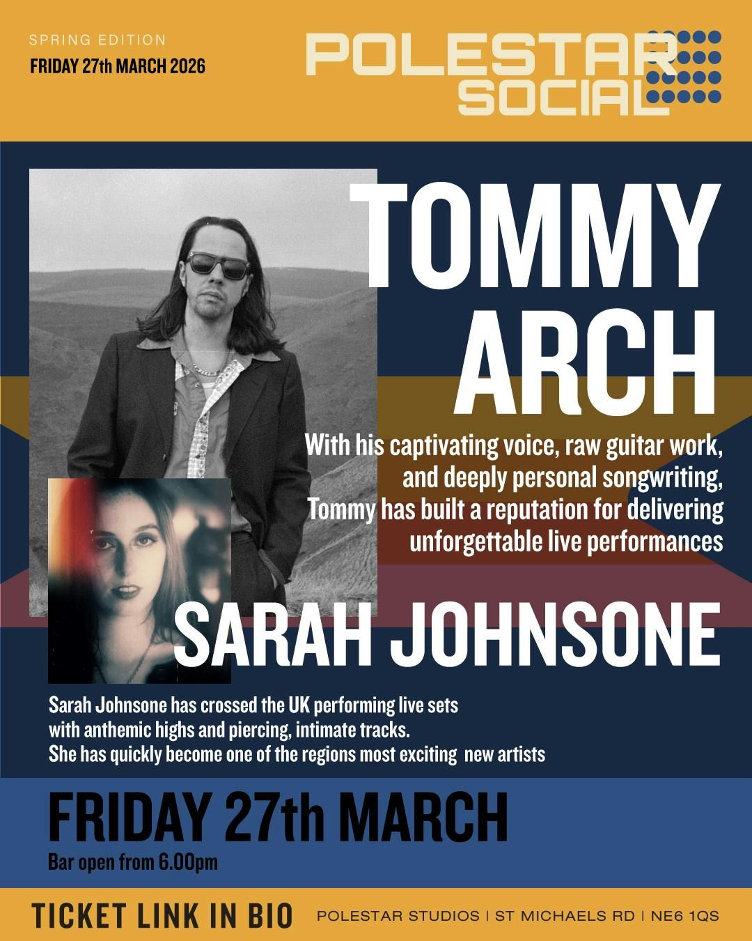 SARAH JOHNSONEDebuting as a Stockton solo artist, Sarah Johnsone’s ‘Tonight’ garnered a place on Spotify’s prestigious New Music Friday to being featured on Frank Berry’s critically acclaimed film ‘Aisha’. She partnered with a band, and has crossed the UK performing live sets with anthemic highs and piercing, intimate tracks. They have quickly become one of the regions ‘most exciting new acts' - an opinion shared by BBC Music Introducing in the North East.