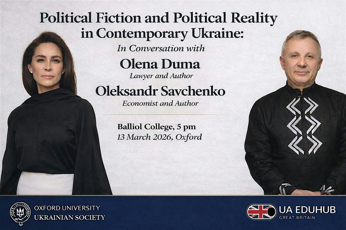 This event brings together two Ukrainian authors whose professional experience spans economics, law and public administration. Joining us in Oxford following their participation in the London Book Fair, where they appeared as featured authors, they will reflect on how literature and personal testimony engage with questions of power, institutional reform and democratic responsibility in contemporary Ukraine.