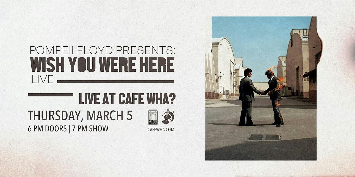 Pompeii Floyd Presents: "Wish You Were Here" Live | Doors 6:00 pm, Show 7:00 pm | $15 General Admission, $25 Premier | 2 item minimumAbout this Event