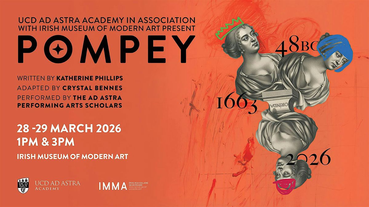 Now, artist and 2025 IMMA Dwell Here resident Crystal Bennes reimagines Pompey for today. This striking new adaptation draws unsettling parallels between the 17th century and our present moment, exploring colonial and post-colonial identity, the erosion of democratic rule, and the inventive ways women wield political power when excluded from official authority. Urgent, immersive and relevant, Pompey speaks directly to a world shaped by instability, violence and uncertainty.