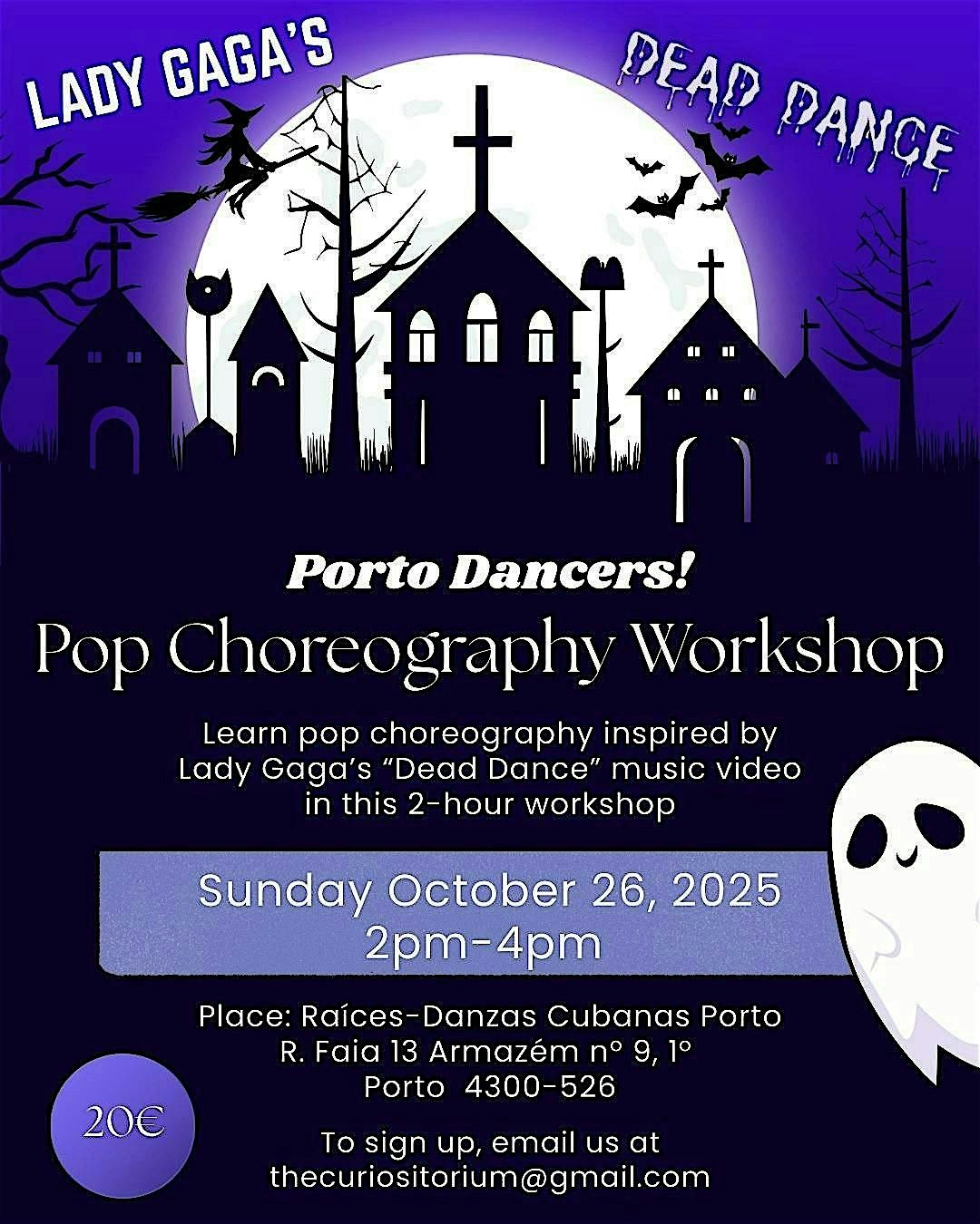 PORTO DANCERS! Get ready for Halloween with a themed pop choreography workshop! In this two hour session, you'll learn a choreographed dance sequence to Lady Gaga's "Dead Dance", inspired by the new music video.