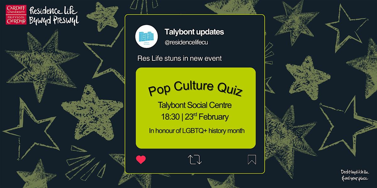 I ddathlu Mis Hanes LHDTC+, dewch draw i'n Cwis Diwylliannol Poblogaidd (gyda phryniau i'r enillwyr!). Dewch gyda ffrindiau neu ar eich pen eich hun i brofi eich gwybodaeth am ddiwylliant poblogaidd. Bydd yn profi eich gwybodaeth am ffilmiau, cerddoriaeth, diwylliant rhyngrwyd a mwy. ✨