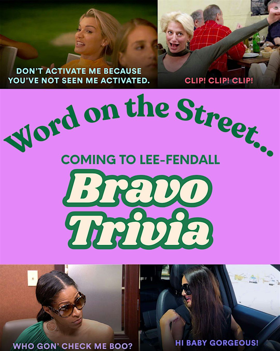 The first of three pop culture trivia nights in the Lee-Fendall garden, Bravo Trivia will test your reality tv knowledge. The event will consist of three rounds and a final question, feel free to make a team or come on your own. Topics will cover everything from housewife franchises to spin-off series.