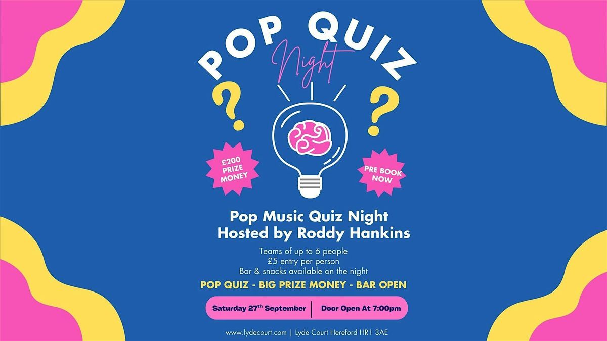 Pop Music Quiz Hosted by Roddy Hankins - £200 PRIZE!