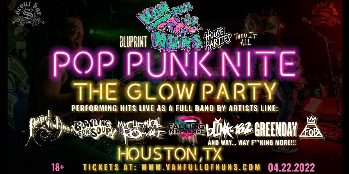 Get ready to scream along to the biggest hits from bands like Blink-182, My Chemical Romance, Sum 41, Fall Out Boy, and way... WAY more all performed live by Van Full of Nuns at "Pop Punk Nite: The Glow Party!"