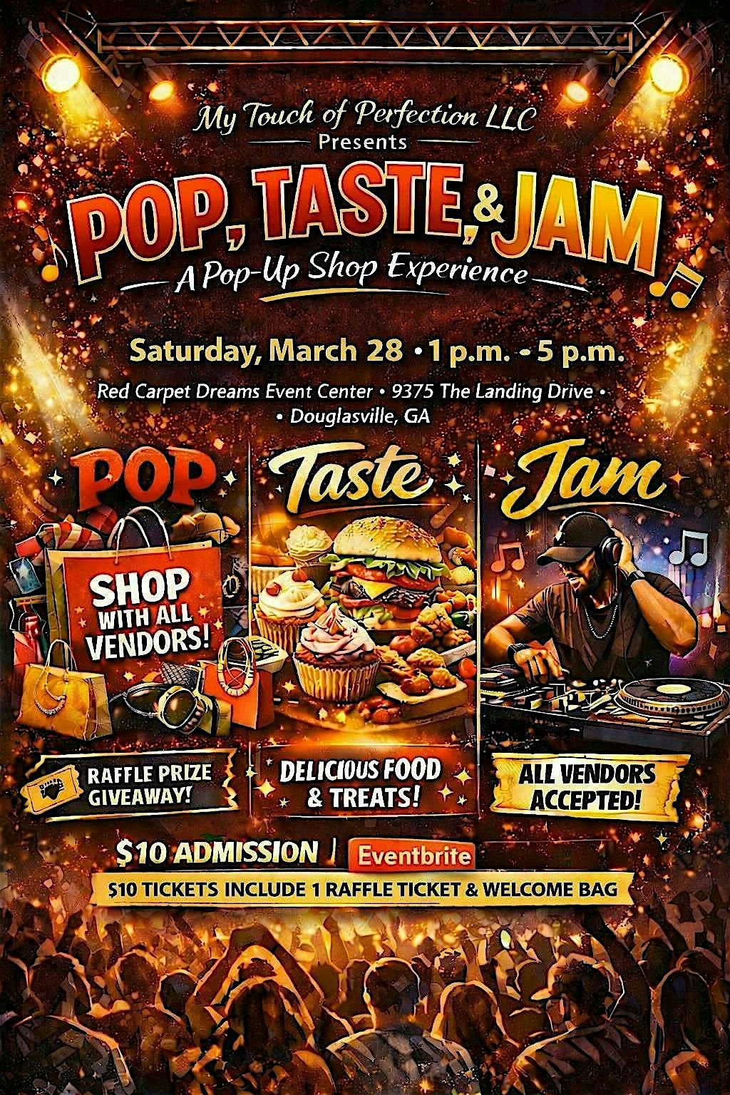 Get ready for an afternoon of shopping, sampling, and nonstop vibes at POP, TASTE & JAM β where community meets creativity and the music stays flowing.