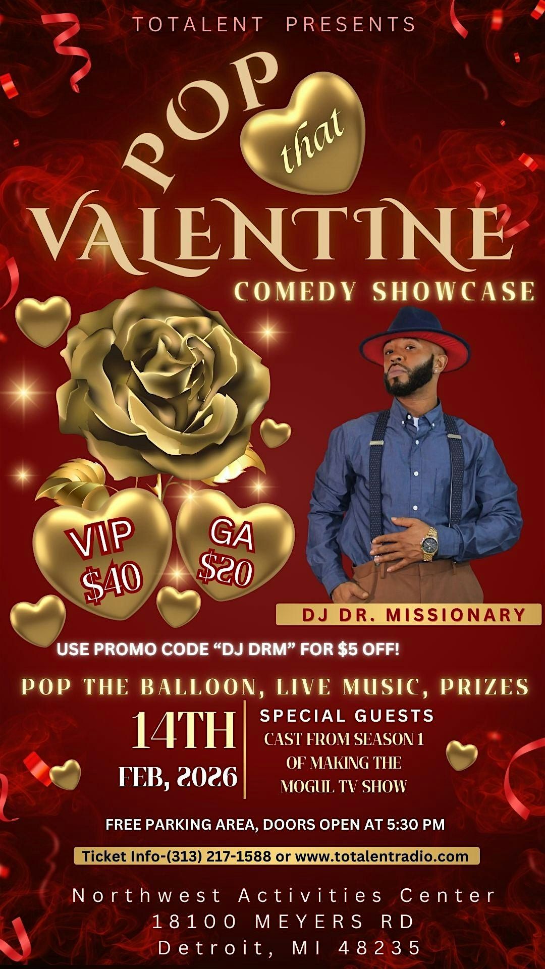 Get ready to celebrate Valentine's Day with a night full of good vibes and laughs! Join us in person for an awesome lineup of music and comedy that'll have you popping with excitement. Whether you're coming with your special someone or flying solo, this showcase is all about fun, tunes, and chuckles. Don’t miss out on the perfect way to pop that Valentine!