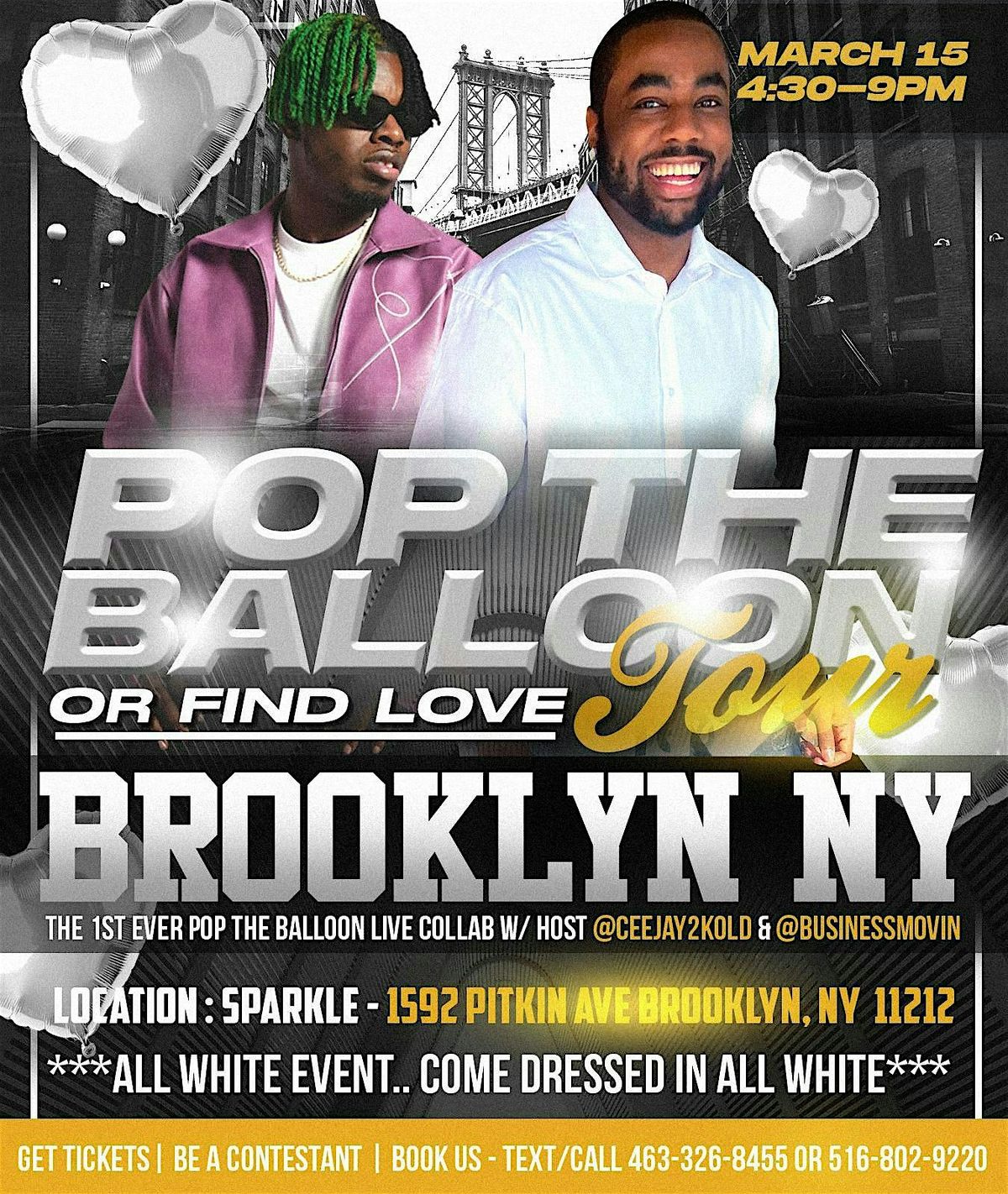 Welcome to POP THE BALLOON OR FIND LOVE : NYC EDITION! Join us at "SPARKLE" AT 1592 Pitkin Ave. Brooklyn, NY 11212 on MAR.14TH, 2026 at 4:00 PM (NYC Time) for a fun-filled event. THE FIRST EVER POP THE BALLOON COLLAB! Are you ready to pop balloons and maybe even find love? Come enjoy live music, GOOD food, and the chance to meet new people. EXCLUSIVE 1 ON 1 Networking oppurtunity! Don't miss out on this exciting opportunity to make new connections and have a blast! See you there!