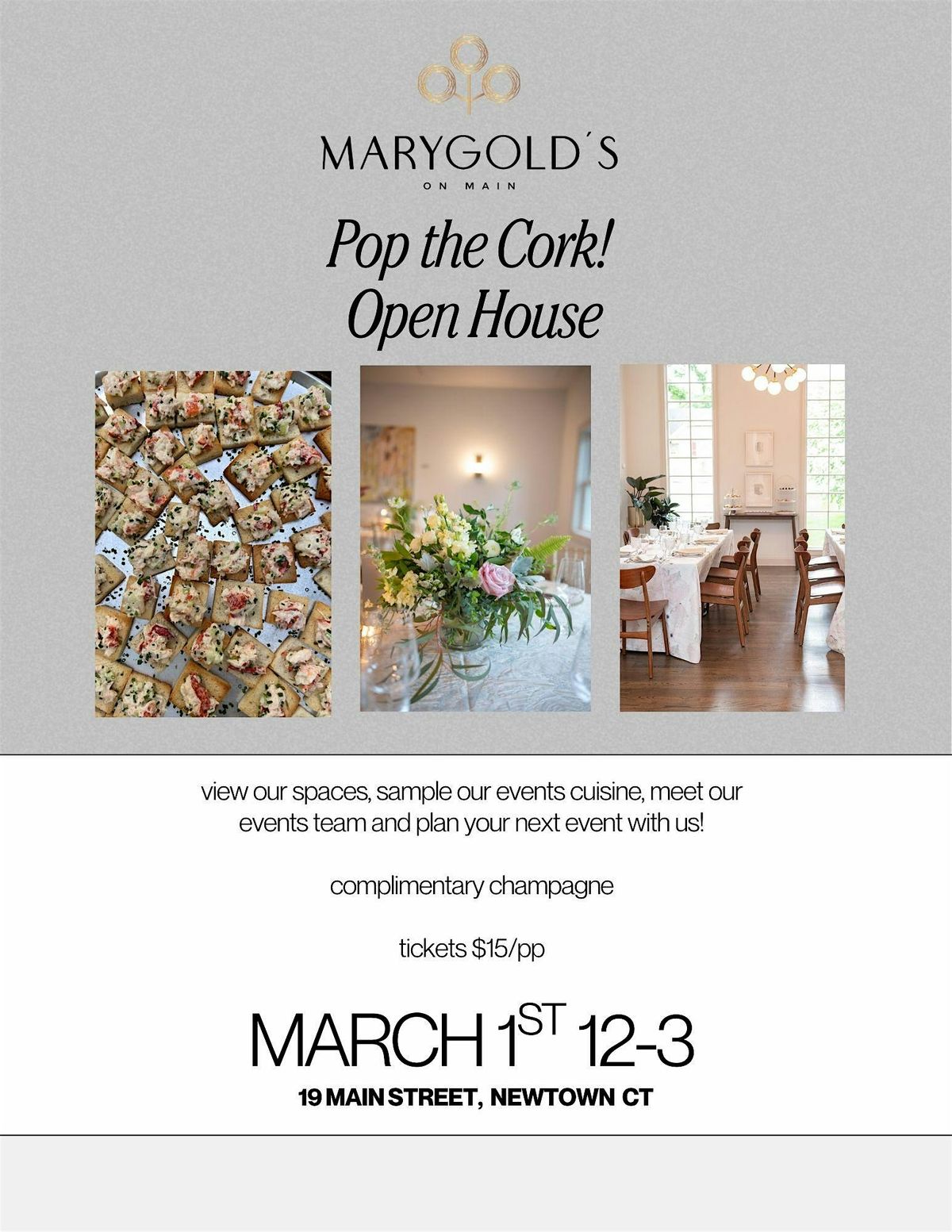 Planning an event this year? Curious how events run at Marygolds on Main? Well then don't miss out on our Pop the Cork! Open House. March 1st 12-3, join us to sample our events cuisine, tour our space, meet our events team and plan your next event! Vendors are welcome to join and learn more about partnerships and future events! Admission is $15/pp.
