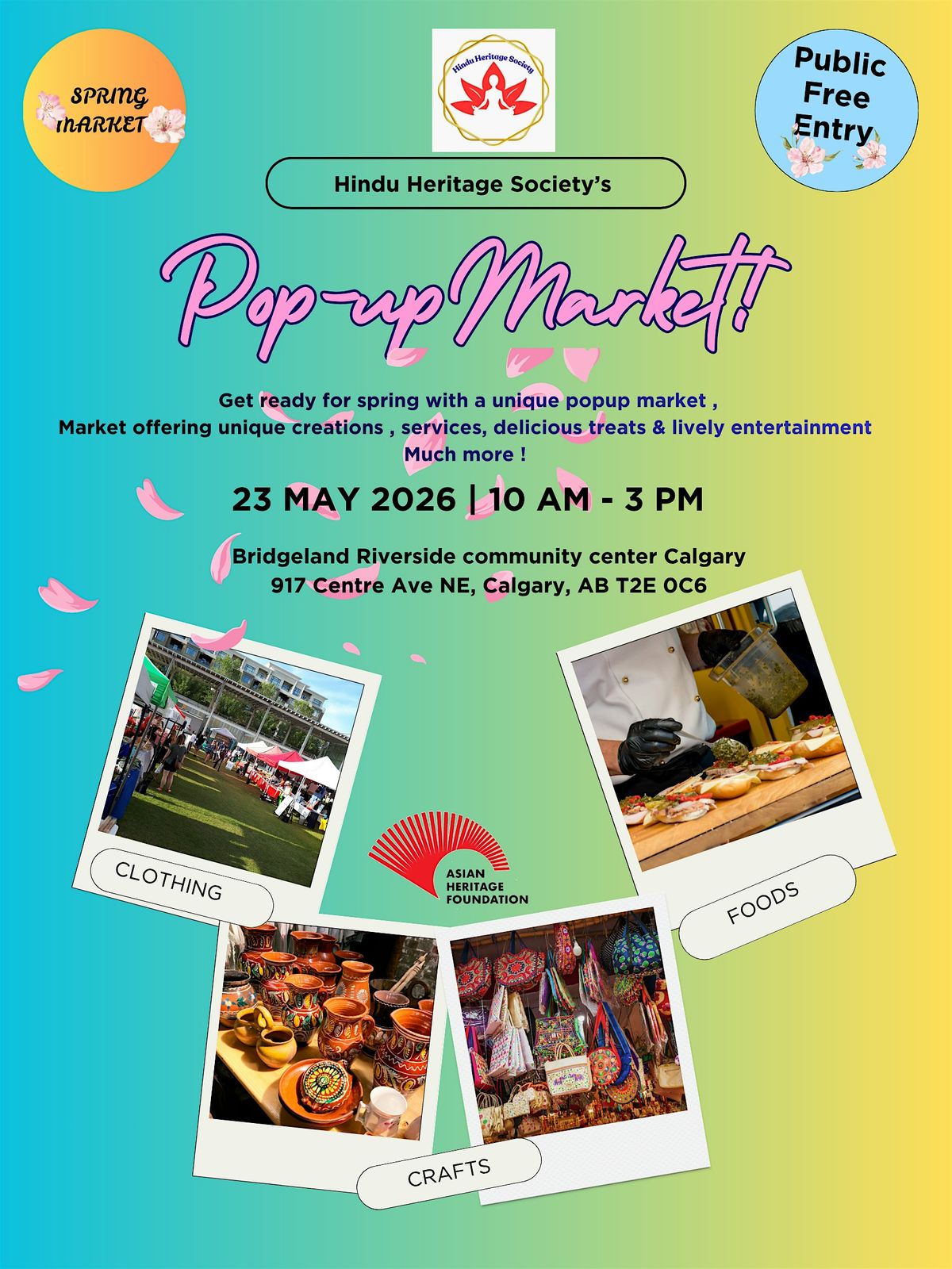 Welcome the season of renewal at Calgary’s Ethnic Spring Market, a vibrant celebration of culture, community, and craft. Explore unique handmade treasures, global delicacies, and artisanal goods from local, diverse vendors. Join us for a lively atmosphere featuring cultural performances, family-friendly activities, and authentic food to celebrate spring with families & friends.