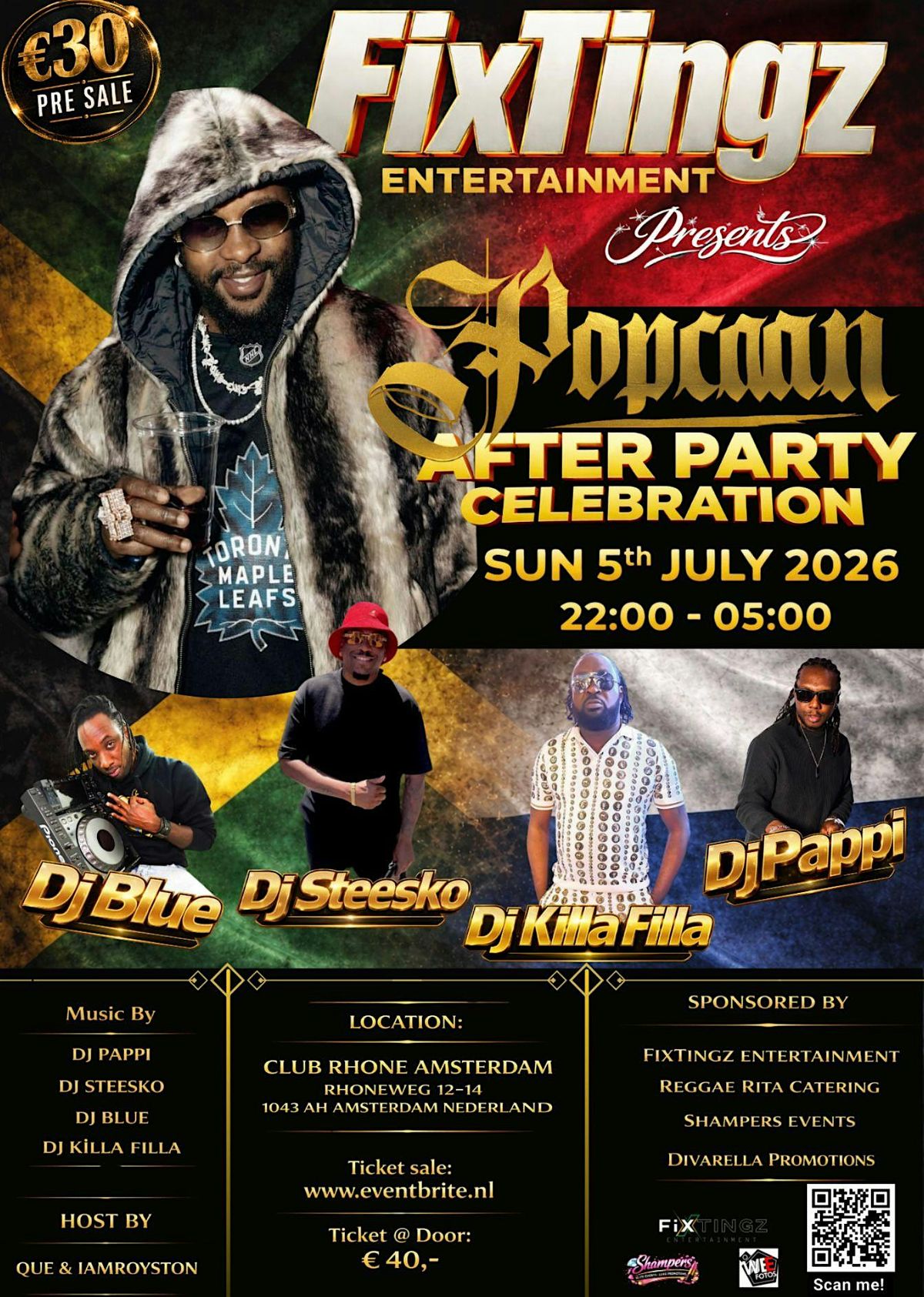 Get ready to keep the vibes going at the Popcaan After party! This in-person event is where the real fun begins, with beats that’ll have you dancing all night long. Hang out, mix and mingle, and soak up the energy as we celebrate with some of the hottest tracks and good company. Don’t miss out on the ultimate after party experience!