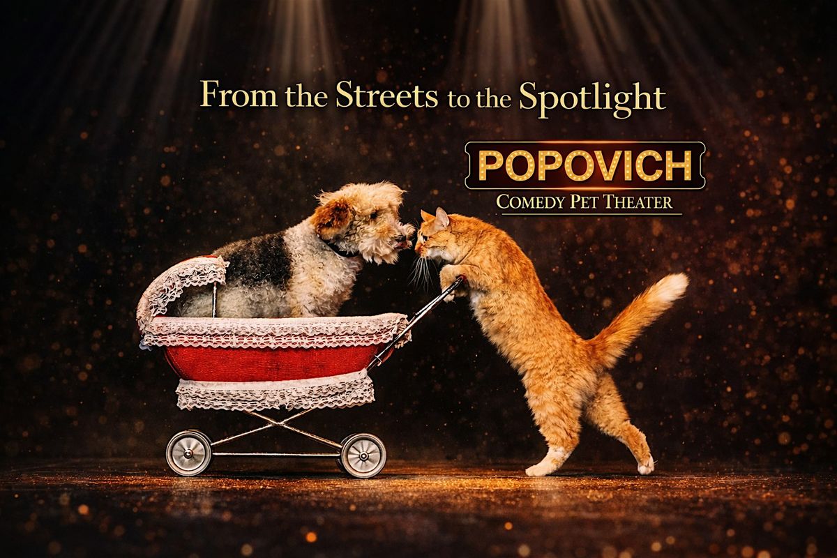 Popovich Comedy Pet Theater, a Las Vegas favorite for 20 years is a one-of-a-kind spectacle where over 30 rescued pets take the stage alongside world-class performers in a show full of laughter, surprise, and heart. —fun for all ages.