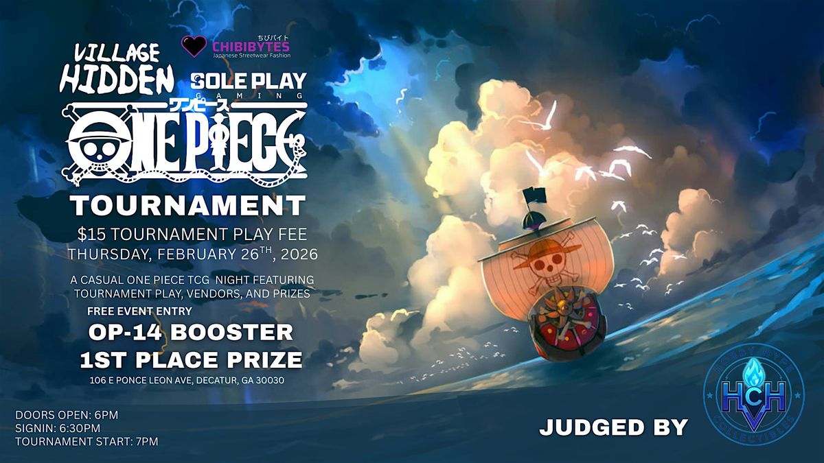 Welcome to the OP14 One Piece Tournament in Decatur hosted by Chibibytes + Soleplay Gaming! Get ready for an epic showdown at Soleplay Gaming on April 2nd, 2026 at 6:00 PM (Eastern Time). Join us for a day filled with intense battles, unforgettable moments, and tons of fun! Whether you're a seasoned pro or just starting out, this event is perfect for all One Piece fans. Don't miss out on the chance to showcase your skills and make new friends in the community. Mark your calendars and get ready to embark on an adventure like no other!
