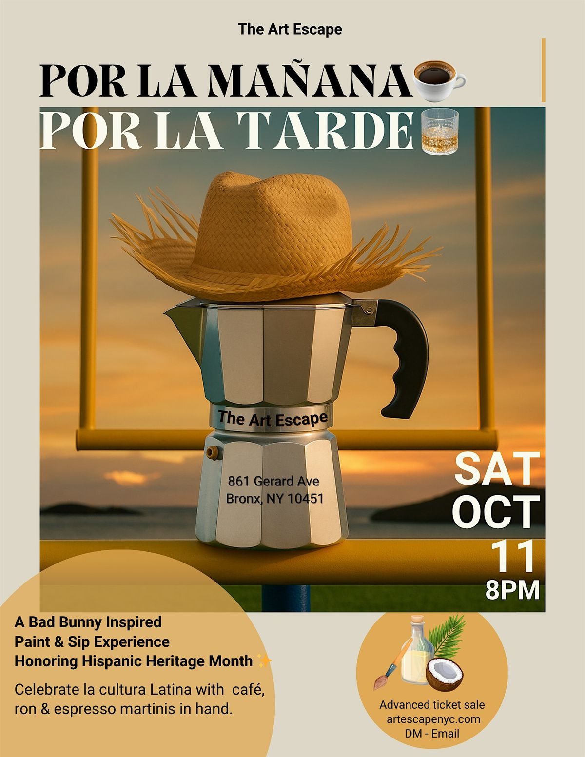 Por La Mañana Cafe, Por La Tarde Ron - Bad Bunny Paint & Sip
