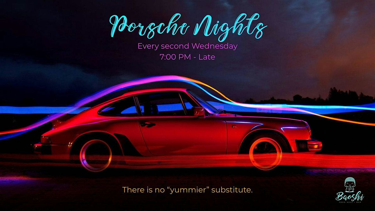 Come join us at Baoshi Food Hall + Bar for a night filled with luxury cars, good company, and great food! Whether you're a Porsche enthusiast or just appreciate beautiful cars, this event is for you.