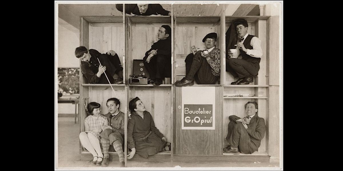 Image : Portrait de groupe de Walter Gropius et de ses étudiants dans son studio au Bauhaus, Dessau, Allemagne, 1928. Photo de Edmund Collein. © Ursula Kirsten-Collein. // Group portrait of Walter Gropius and his students in Gropius' Bauhaus studio, Dessau, Germany, 1928. Photo by Edmund Collein. © Ursula Kirsten-Collein.