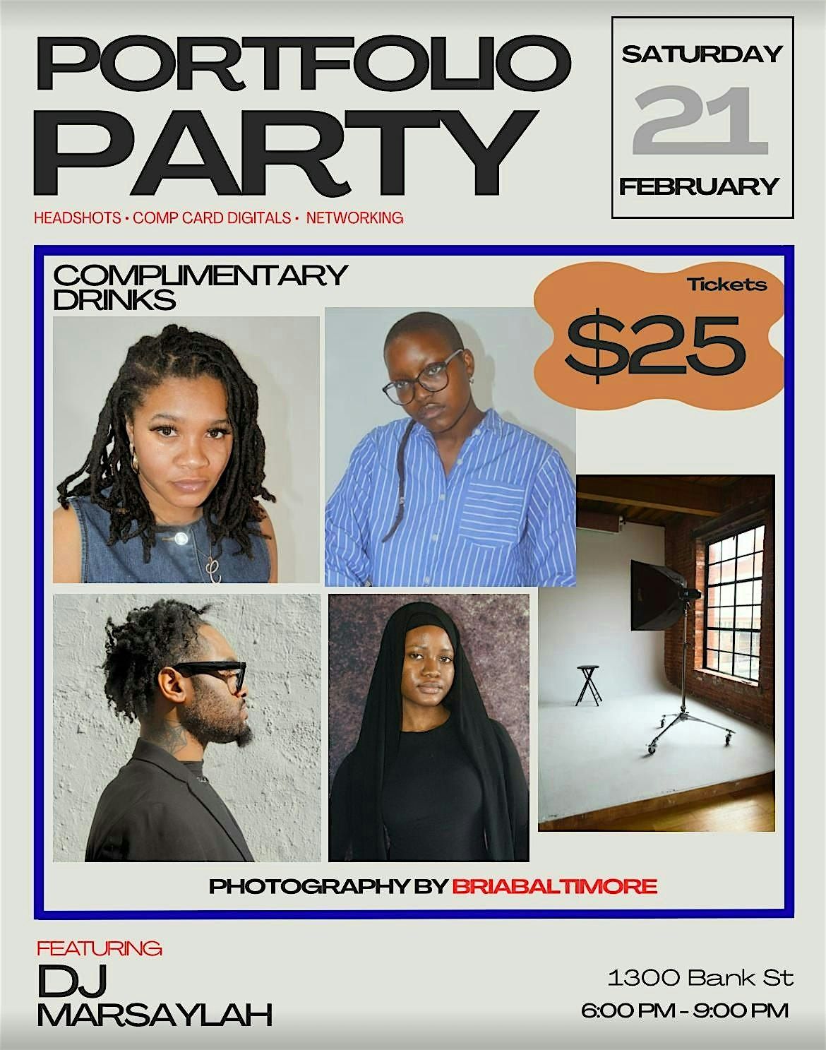 Portfolio Party is a curated creative networking experience designed for models, artists, and creatives looking to elevate their personal brand. Attendees will receive professional headshots and comp card digitals, enjoy complimentary drinks, and connect with fellow creatives in a studio-style setting.