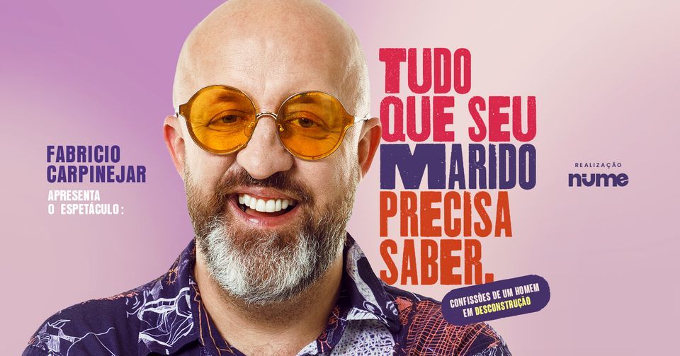 Só seremos felizes quando não dependermos de mais ninguém. Isso é o mais difícil de entender em um casamento. No novo espetáculo Tudo que seu marido precisa saber, o poeta Fabrício Carpinejar faz um humor sério sobre a vida a dois. Através da sua perspectiva de homem em desconstrução, ele fala sobre felicidade, respeito, sonhos e a busca constante pela sua melhor versão.É preciso cuidar, sonhar e considerar a individualidade e o coletivo, entendendo os limites e os papéis de cada um no casamento. Esse é um poderoso passeio por diversos desafios da vida a dois, com situações ilustradas, caso você ache que o único jeito de seu marido entender é desenhando.