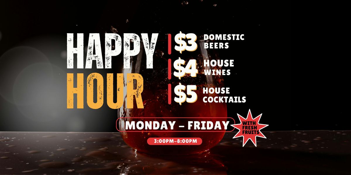 Join us Monday – Friday from 3PM – 8PM and enjoy: