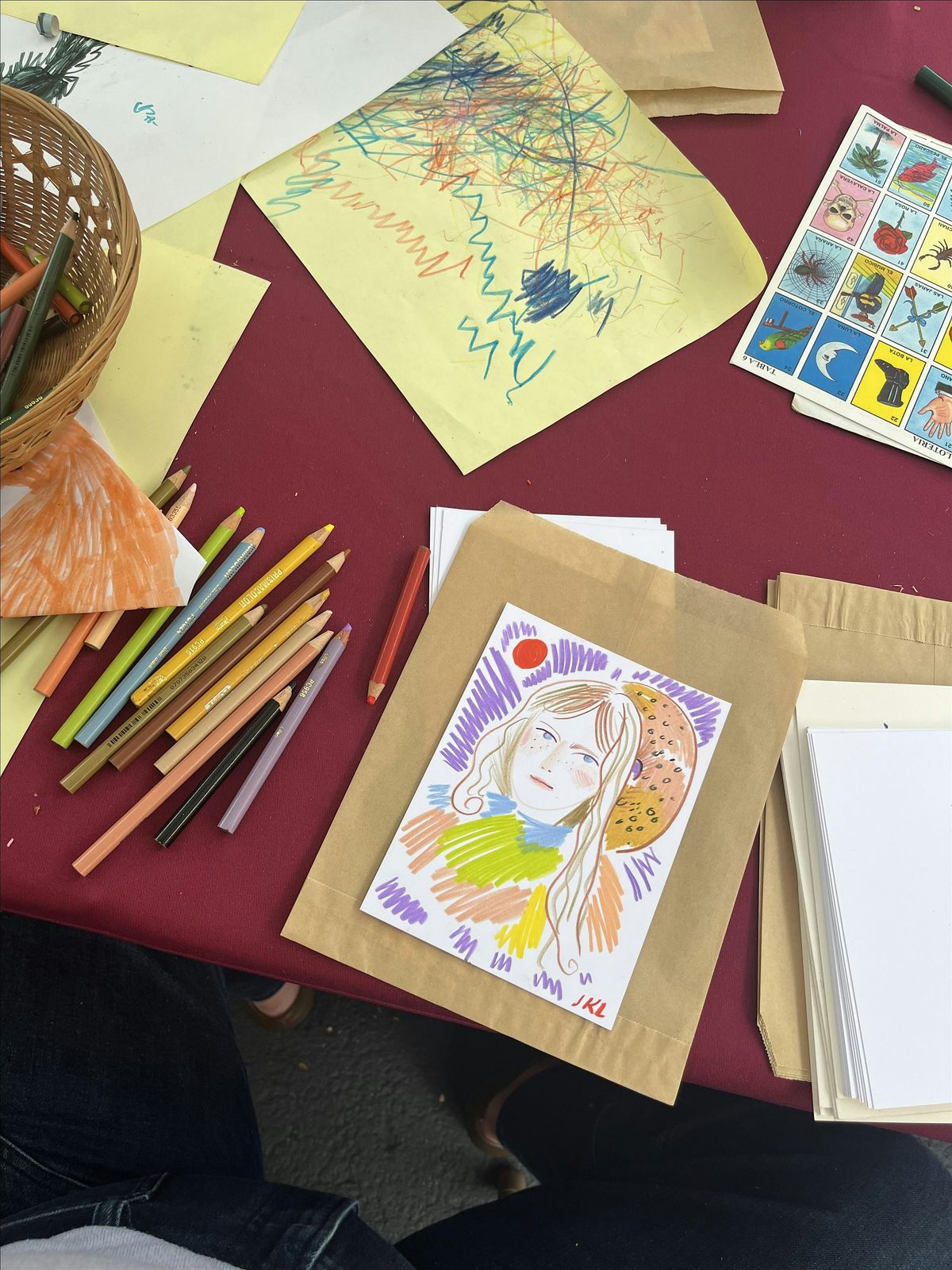 Together, we will explore great portraits of art history,play with personal style, and take turns drawing each other as a means of community building. This workshop will cover both the creative fundamentals of building a portrait and the intimacy of drawing face to face. How do you make your sitter feel at ease, and how does it feel to be seen? These are questions we'll explore as we dive into an afternoon of portrait practice!