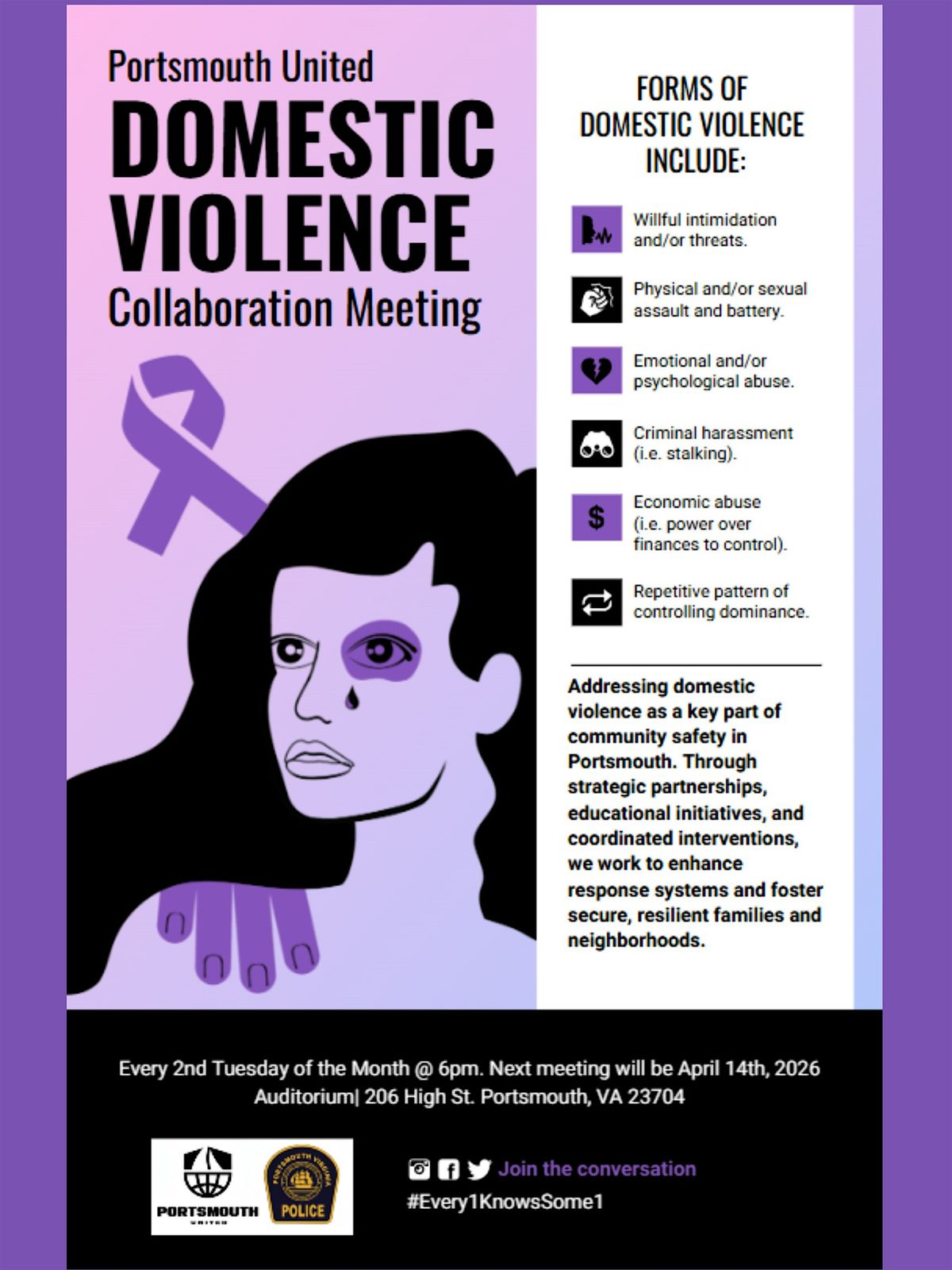 Join us in person for the Portsmouth United Domestic Violence Collaboration Meeting! It's a great chance to connect, share ideas, and work t