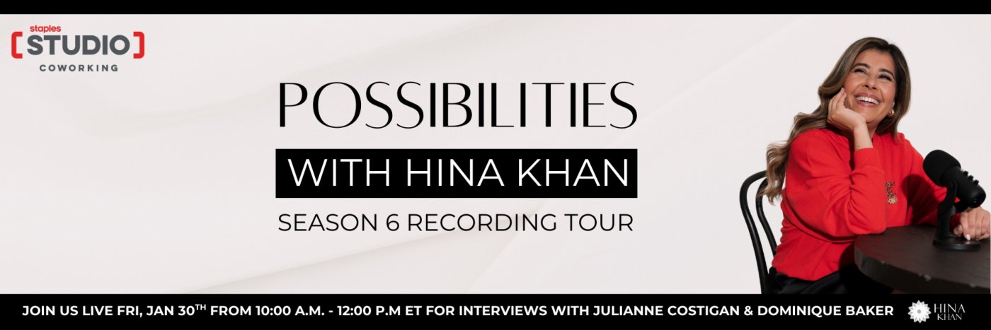 A special live taping of Possibilities with Hina Khan, featuring two inspiring guests, Julianne Costigan (Founder & CEO, Costigan) and Dominique Baker (Content Creator) at Staples Studio Oakville!