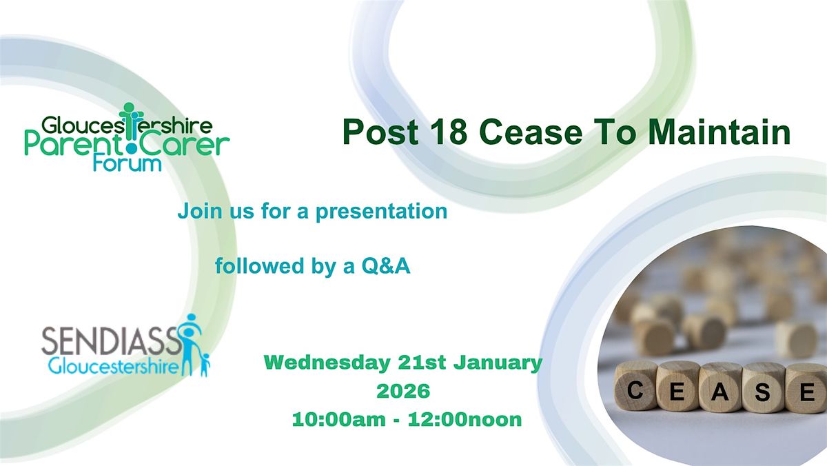 If you have any specific questions that you would like addressed as part of this session, please email: [email protected] using the email title 'Post 18 Cease to Maintain' and we will submit them for answering as part of the sessions.