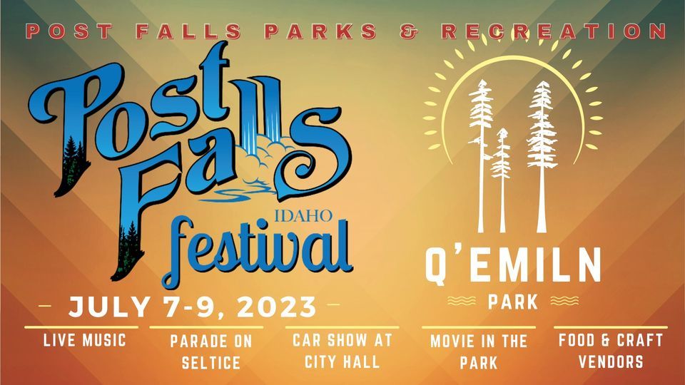 Post Falls Festival kicks off July 7 -9. Enjoy Live music, vendors, food trucks. Bring the whole family. Movie in the park, inflatables for the kids, and a beer garden for the adults at Q'emiln Park, Post Falls. The parade is located on Seltice Way and Car Show & Shine at Post Falls City Hall. Mark your calendars and join us for the Biggest Weekend of the Summer