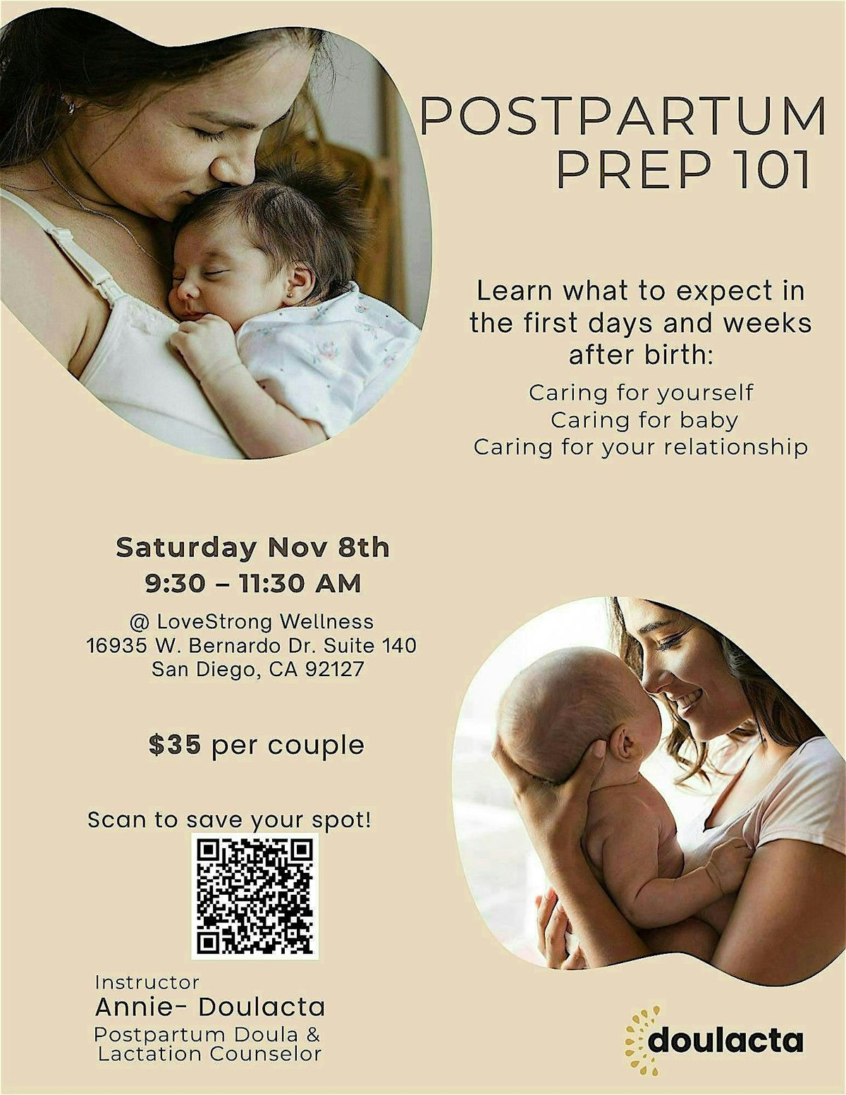 Led by: Annie Guevara, Postpartum Doula & Lactation Counselor, Founder of Doulacta