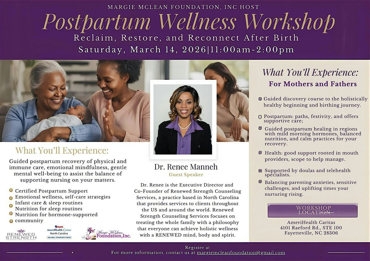The Margie McLean Foundation, Inc. invites mothers and fathers to join us for a powerful and supportive Postpartum Wellness Workshop designed to nurture your mind, body, and spirit after baby arrives.