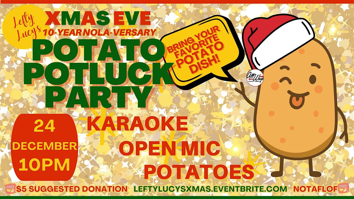 Got no plans for Xmas Eve? You do now! Come to the Allways Lounge & Cabaret at 10pm for a Potato Potluck, Open Mic, and Karaoke night to celebrate Lefty Lucy's 10th Anniversary in New Orleans! Guests are encourage to bring a dish, try a dish, showcase a talent, sing a karaoke jam, or just enjoy some low key potato-based festivities.