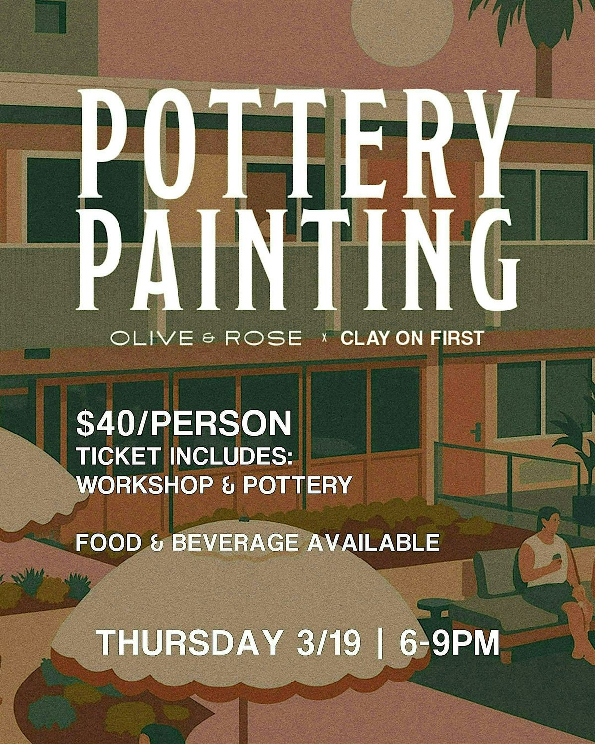 Welcome to Pottery Paint & Sip at Olive & Rose! Join us for a fun-filled evening of creativity and relaxation. Unleash your inner artist as you paint your own pottery masterpiece while enjoying a glass of your favorite drink. This in-person event is the perfect way to unwind and socialize with friends or meet new people who share your love for art. No experience is necessary - our expert instructors will guide you every step of the way. Come sip, paint, and create memories that will last a lifetime!