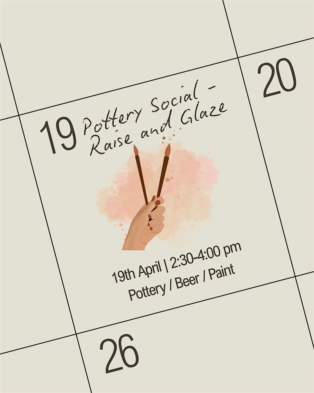 Join us in person for a fun and laid-back afternoon of creativity and good vibes. Whether you're a pottery pro or just starting out, this social is all about raising a glass and enjoying some creativity together. Bring your friends, get your your creativety flowing, and let's make some unique pieces while sharing laughs and good company. Don't miss out on this awesome chance to connect and create!