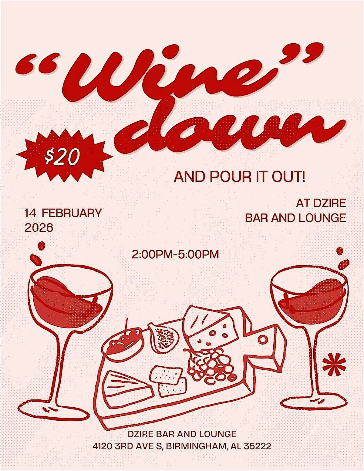 Pour It Out: Galentine’s Edition is the perfect opportunity to “wine” about your ex, maybe even your situationship or “wine” down with women who are uplifting and understanding, regardless of your relationship status. Whether you’re single, dating or in a relationship, it’s important to keep self-love as a priority, and you can’t forget about your girls! Kick off a Valentine’s GNO with us at Dzire! Experience wine and charcuterie pairings, sweets and treats and feel “The Buzz”, as it invites you in to a new community that focuses on improving and maintaining your mental well-being. Whatever it is you are holding in, we hope that you pour it out and be filled with relief, love and a new point of view.