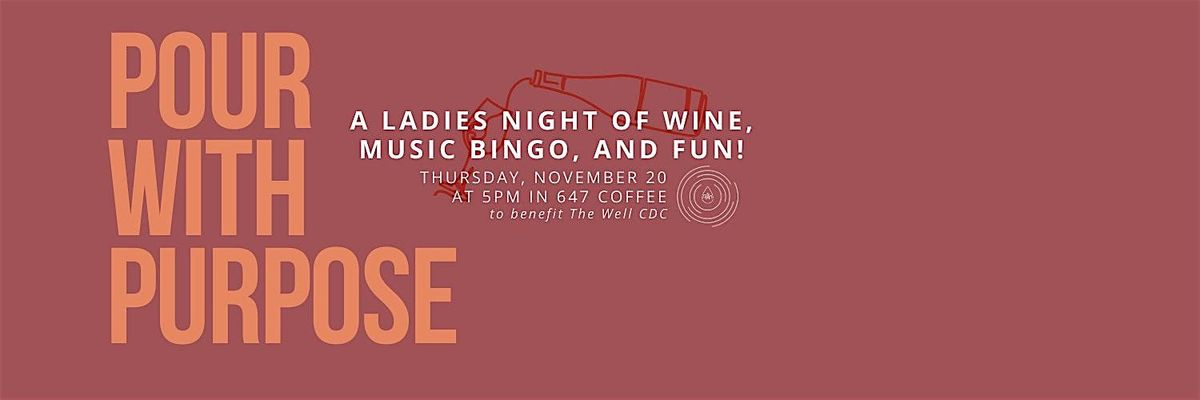 Join us at 647 Coffee for our Pour With Purpose Ladies Night with wine, appetizers, raffles, and several rounds of 90's & 2000's Music Bingo provided by Rock the Crowd Entertainment!