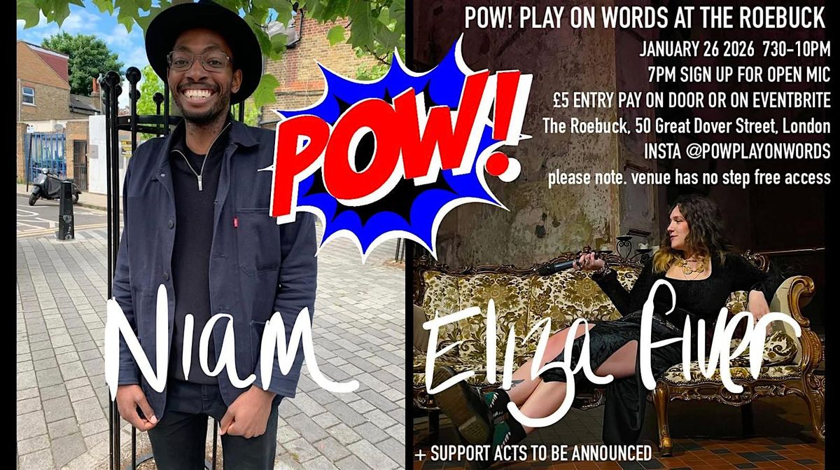 POW! Kicks off this years events at The Roebuck with wonderfil featured poets, Eliza, Niam and Yap. Plus the always excellent open mic.