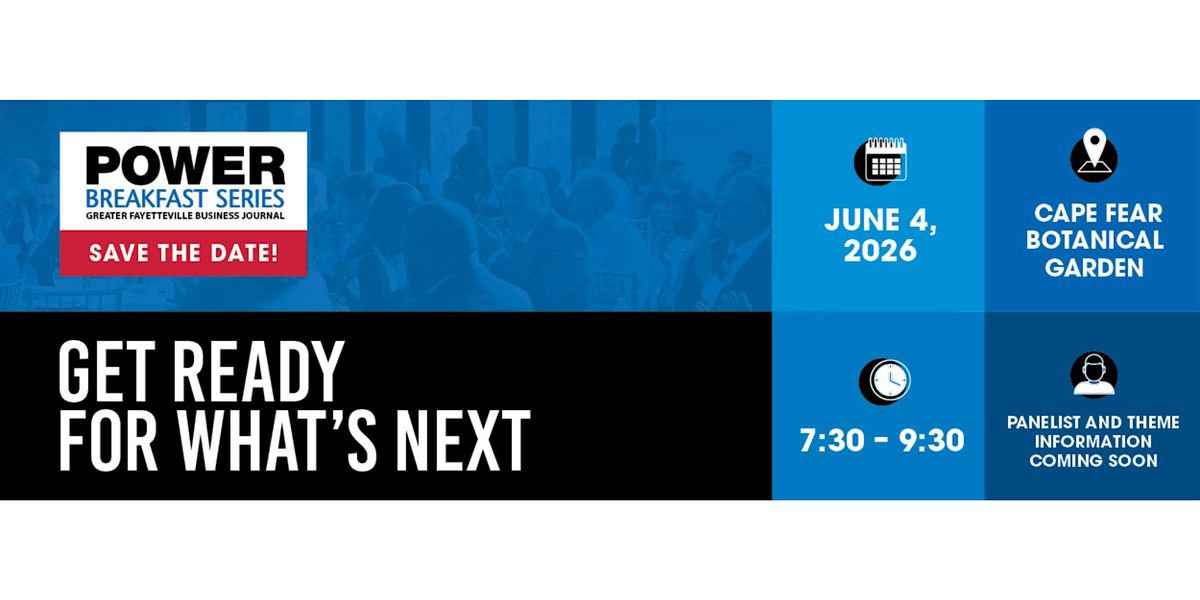 To learn about becoming a Power Breakfast sponsor, contact the Greater Fayetteville Business Journal at 910.240.9697 or [email protected].