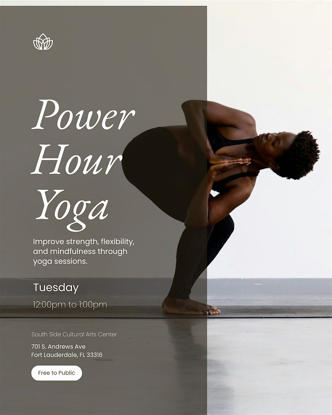 Recharge your Tuesday in just 60 minutes. Beat the midday slump with this energizing Power Hour at the South Side Cultural Arts Center. Designed specifically for the lunch-break schedule, this efficient class focuses on building strength, clearing mental fog, and relieving workday tension. You will return to your afternoon feeling empowered, focused, and stress-free.