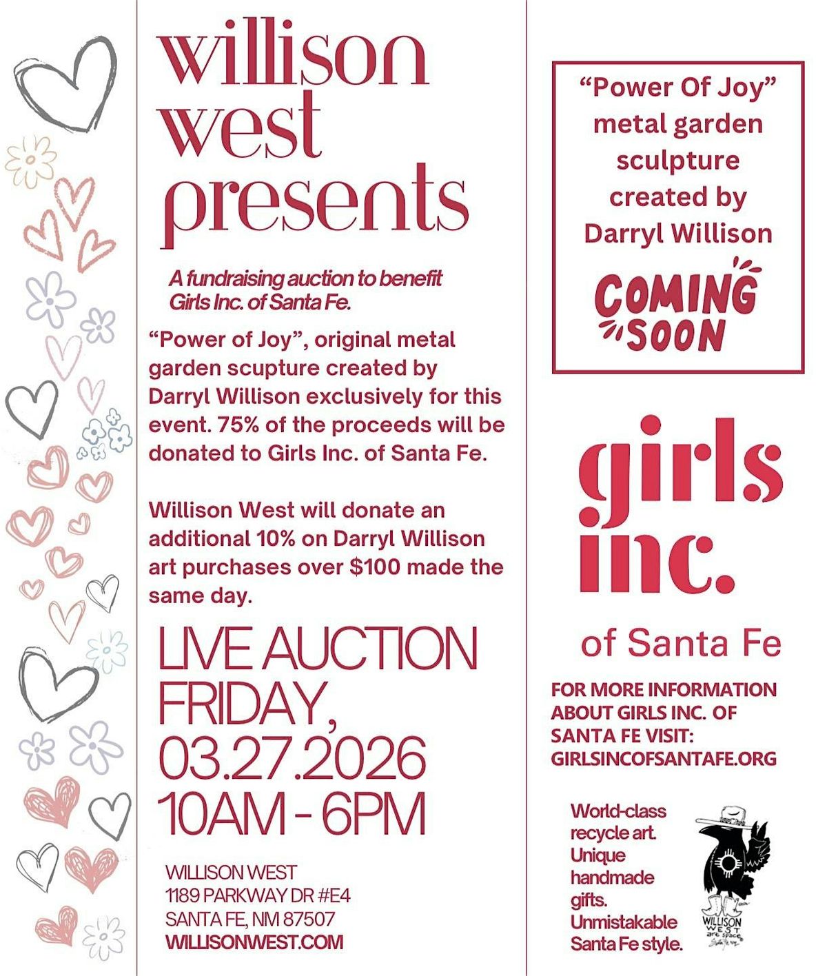 Working as community, building knowledge of who and what we are and do! Bringing together the arts & humanities to build and support the power of JOY! Visit www.willisonwest.com or www.girlsincofsantafe.org for more info on each!