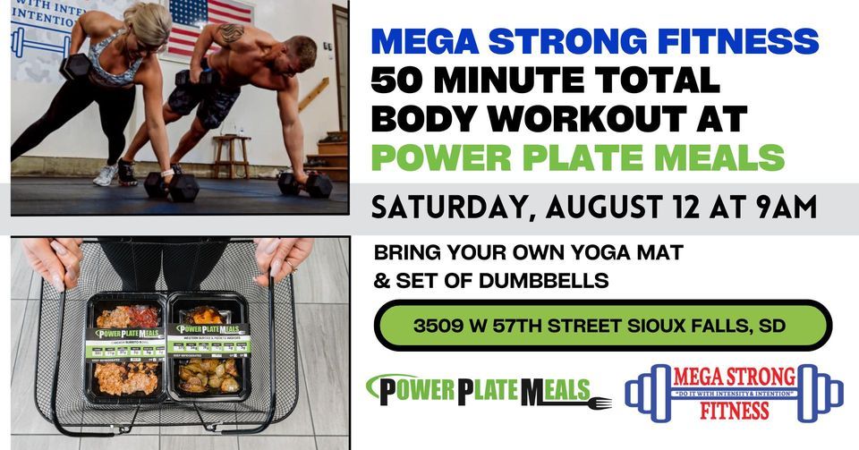 Join us for a 50 minute total body workout with Mega Strong Fitness!!Bring a yoga mat, set of dumbbells, water, and comfortable shoes.