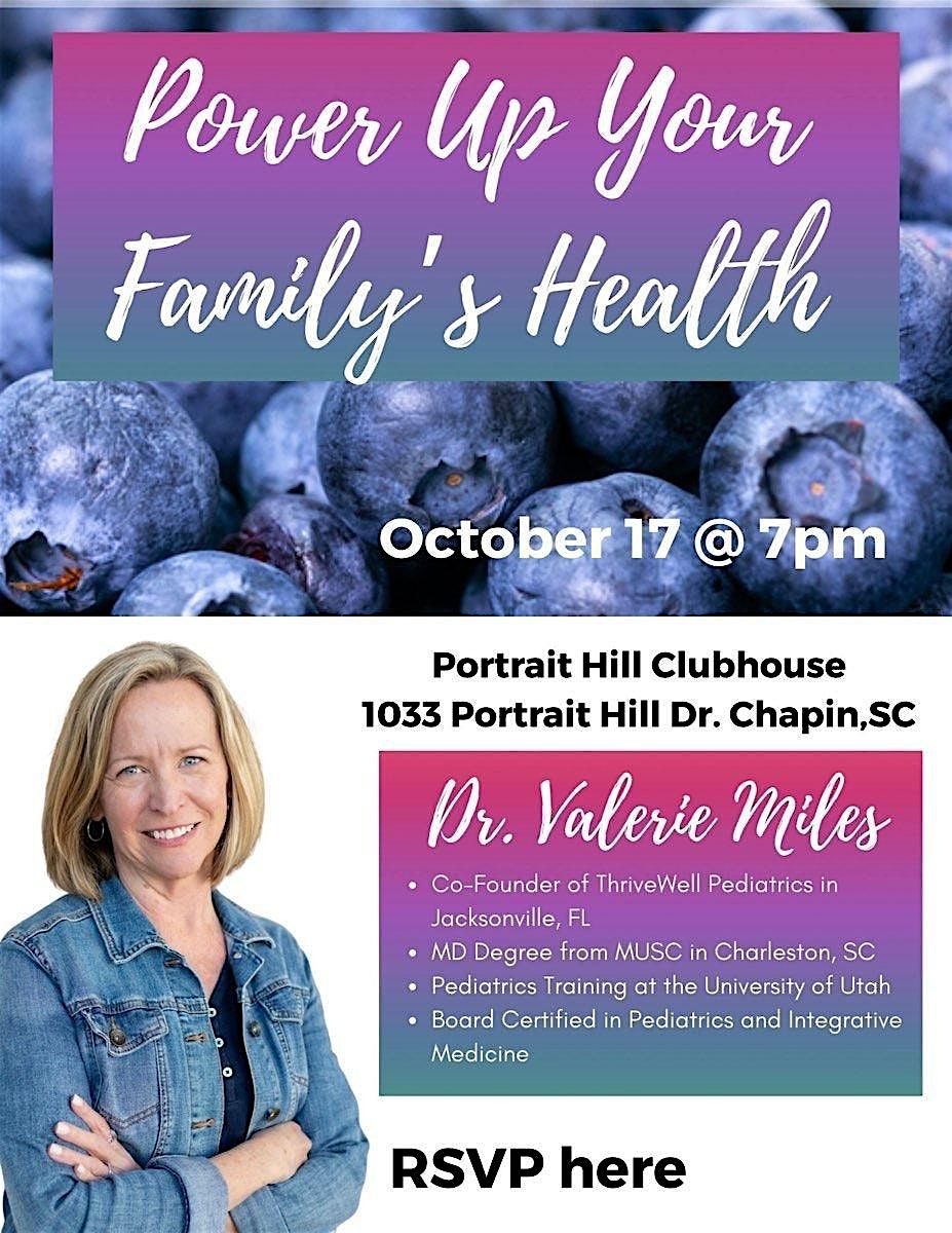 Join the HEALTHY HAPPENS HERE COMMUNITY on Friday evening, October 17th at Portrait Hill Clubhouse at 6:30 pm. You will hear from Dr. Valerie Miles who is a Board Certified Integrative Pediatrician!