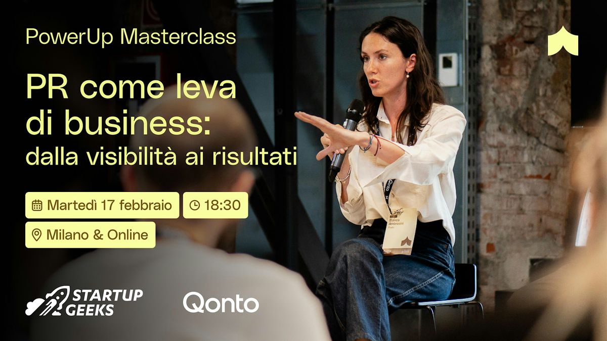 Questo secondo appuntamento della serie di PowerUp Masterclass, organizzato da Qonto con Startup Geeks, è pensato per founder, imprenditori e imprenditrici che vogliono usare le pubbliche relazioni in modo strategico: non come attività accessoria, ma come leva di business, orientata a obiettivi chiari e risultati misurabili.