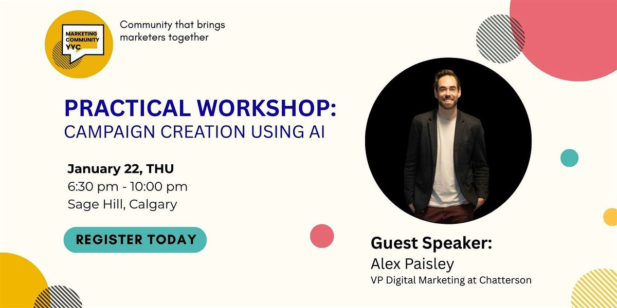What: Practical Workshop: Campaign Creation Using AI with Alex Paisley. Join our practical workshop and get hands-on experience learning how to leverage AI in campaign creation with guest speaker Alex Paisley.